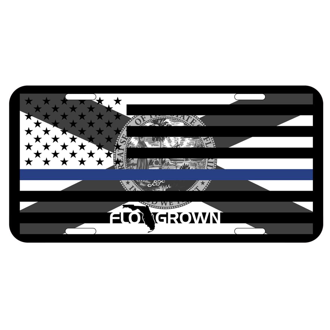 Take your support of Florida’s law enforcement wherever you roam with our Blue Line License Plate. A black and white Florida/USA flag has a single blue stripe representing our gratitude for the men, women, and families of those serving in Florida’s law enforcement agencies. Its metal construction will withstand whatever the road throws at it.