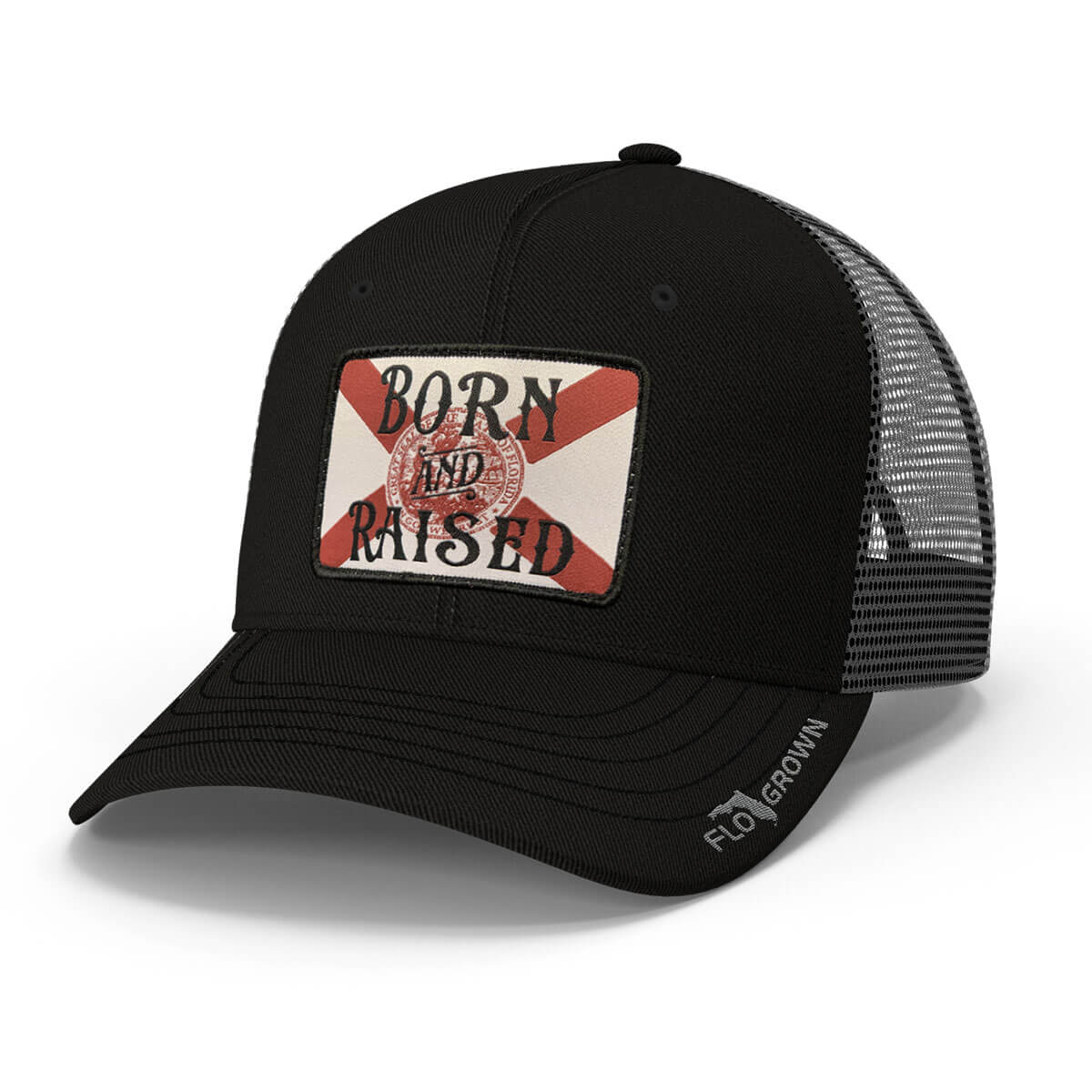 Elevate your style with the "Born & Raised Men's Hat" tailored for men. Its striking design combines the Florida flag with the "born & raised" message, celebrating your roots with flair. With an adjustable back, curved bill, and breathable mesh back, this hat isn't just an accessory; it's a statement of your Florida pride and fashion sense.