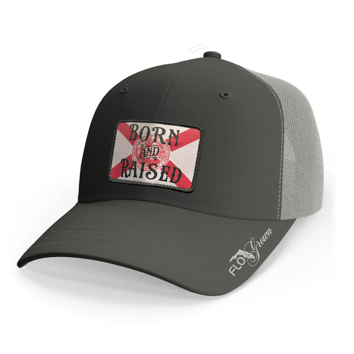 Step out in style with the "Born & Raised Women's Hat" crafted exclusively for women. Its captivating design artfully combines the Florida flag with the "born & raised" message, celebrating your roots with elegance. With an adjustable back, curved bill, and breathable mesh back, this hat isn't just an accessory; it's a statement of your Florida pride and fashion-forward sensibilities.