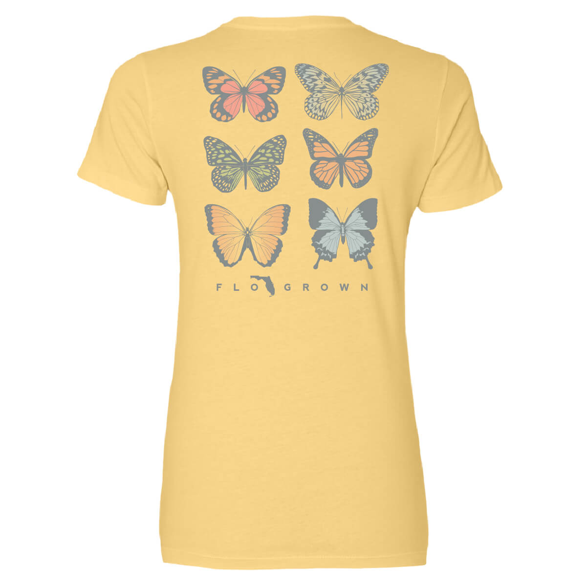 The FloGrown way isn’t just a lifestyle, it’s a transformative experience that brings Floridians closer to the diverse species that call this state home. We believe our Butterflies Tee represents the many beautiful creatures that we’re lucky to encounter right out our front door. This bright yellow cotton tee features six different butterfly species on the back and a FloGrown logo on the left chest. Available in sizes through XXL.