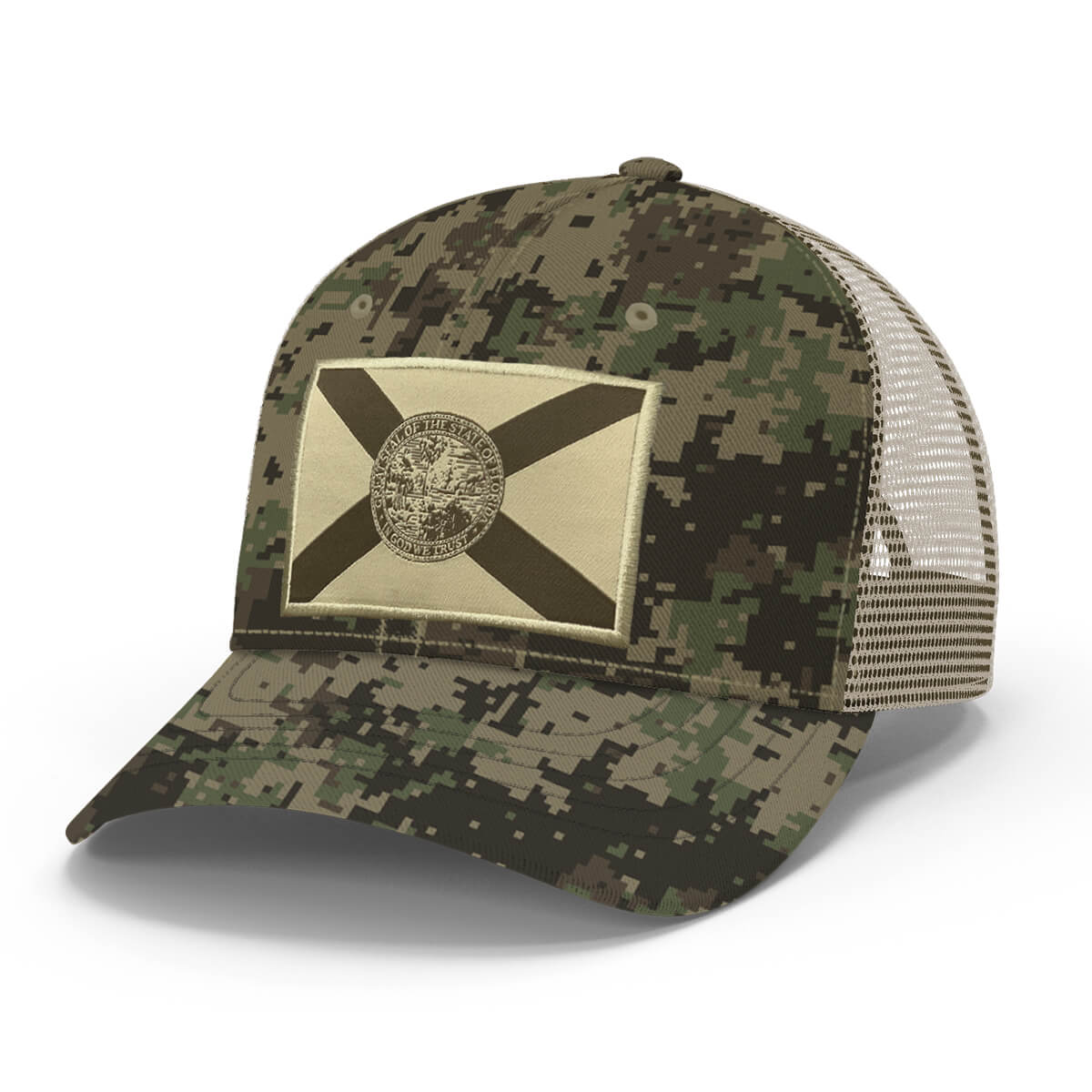 Whether you’re a member of our armed forces, love the look of modern camo, or just love a good Florida hat, the Digital Camo Flag Patch Hat is an instant favorite. A digital camo pattern fills the bill and structured crown with a Florida state flag front and center. The adjustable mesh backing provides breathability and a comfortable fit for all adult head shapes and sizes. If there’s a camo lover in your life, give them the FloGrown Digital Camo Flag Patch Hat that they’ll rarely want to take off.
