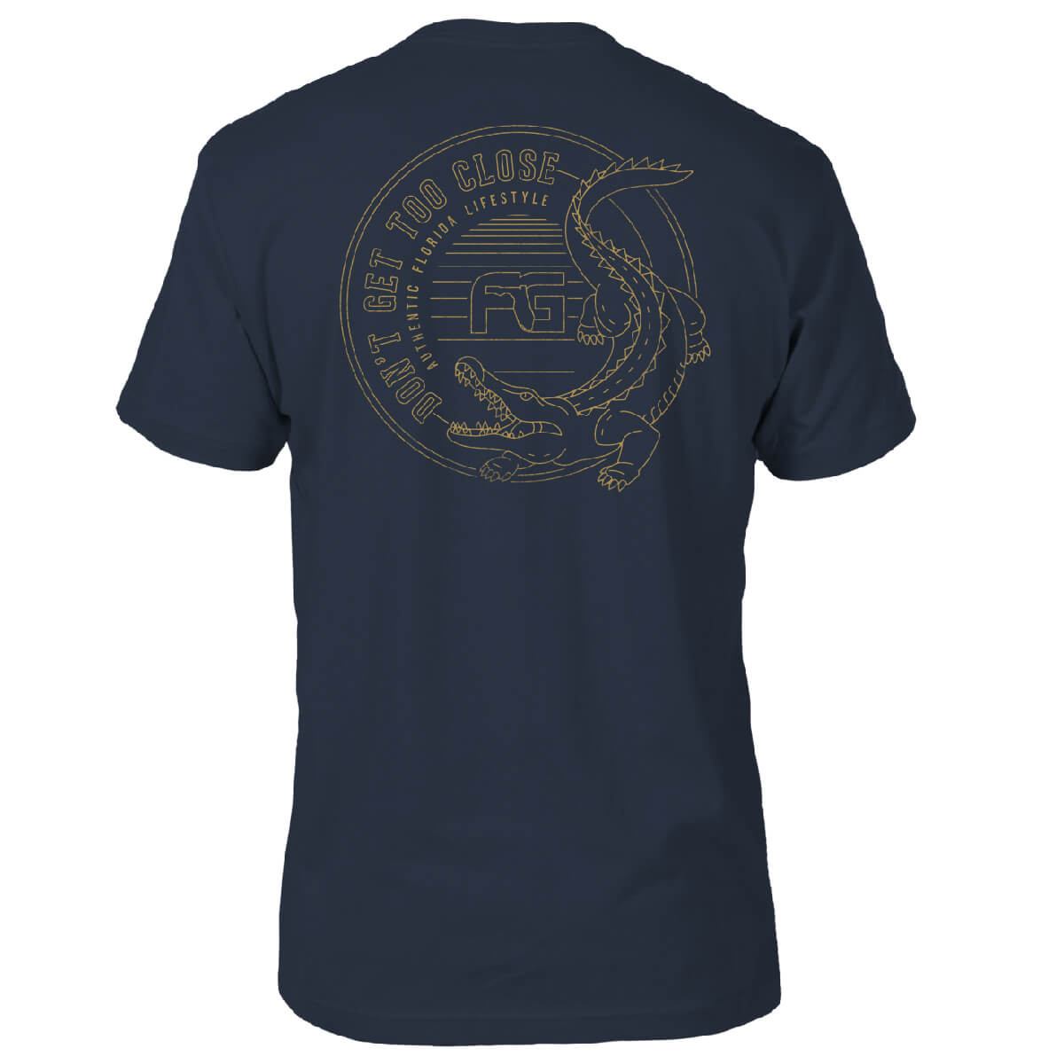 Elevate your style with the "Don't Get Too Close Tee" for men. Featuring a captivating design with a gator and the words "don't get too close," this tee adds a touch of adventure to your leisure wear. What makes it special? The striking back print that makes a bold statement wherever you go. Make a fearless statement with this unique tee.