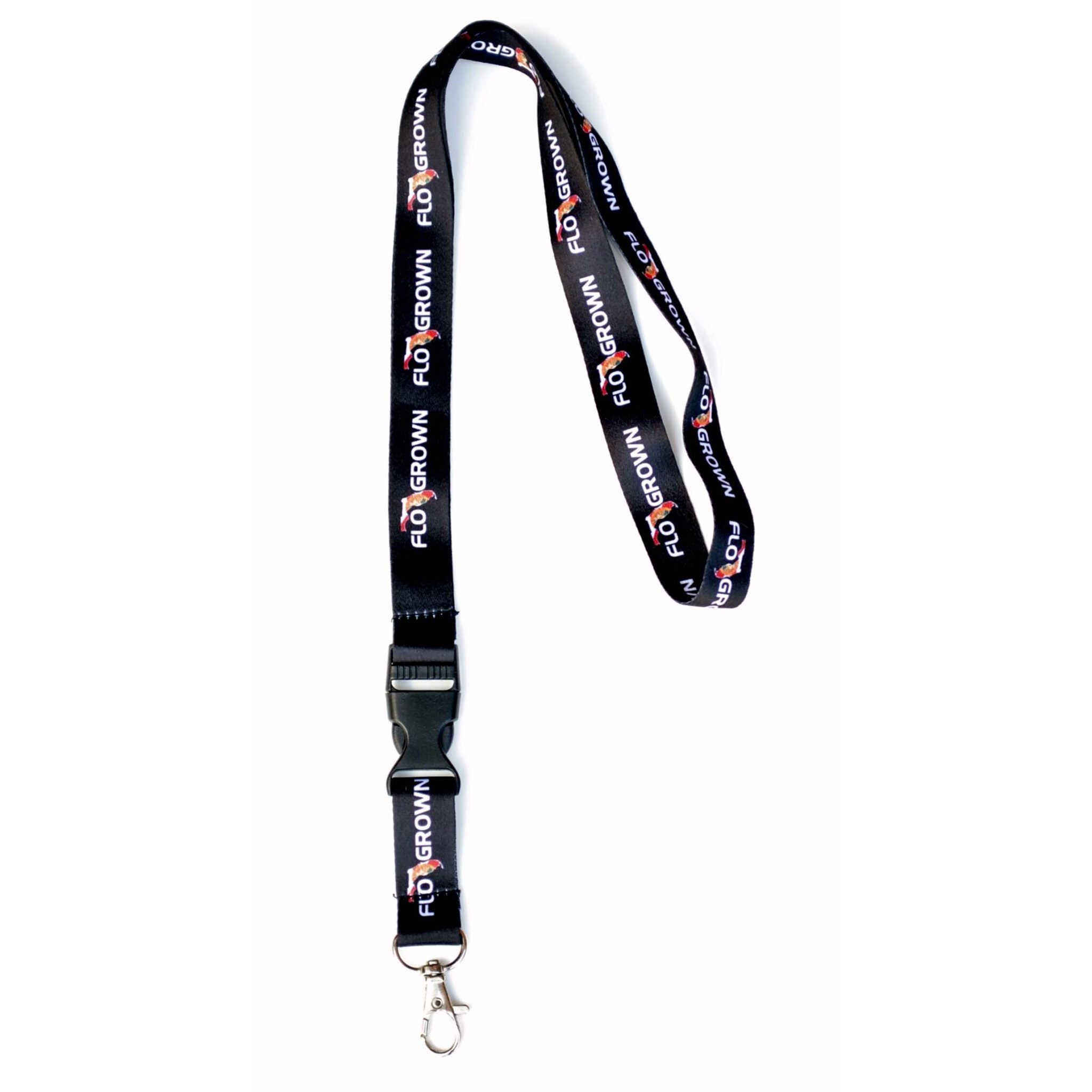 Never lose your keys again with our FloGrown Lanyard. This black lanyard with full-color FloGrown flag logo features a detachable, metal clasp. Its lightweight, thin design makes it easy to carry in a purse or pocket day after day. Its bold design is also convenient for keeping track of your boat, ATV, or spare keys that might otherwise get misplaced around the house.