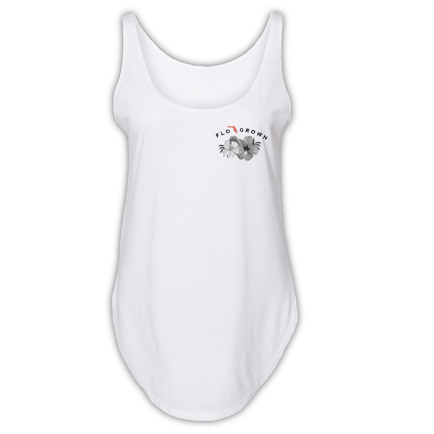 Warning: the minute you slip this Floral Flag Tank on, you’ll never want to take it off. Designed for extreme softness, this 65/35 polyester-cotton blend has been laundered for reduced shrinkage. The FloGrown logo is stamped on the left chest above two blooming bulbs. On the back of this black women’s tank top, flowers border the Florida state flag with FloGrown seal. Sizes small through extra-large are available.