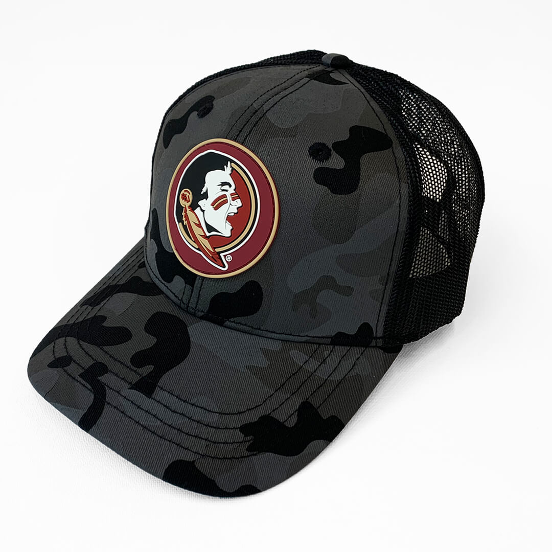 The "Florida State Seminoles Black Camo Logo Hat" is a fusion of style and state pride for adults who lead an outdoor lifestyle. Sporting a striking black camo design, it prominently displays the iconic Florida State Seminoles logo. With a snapback fit and a breathable mesh back, it's not just a fashionable choice—it's a comfortable statement piece for true fans.