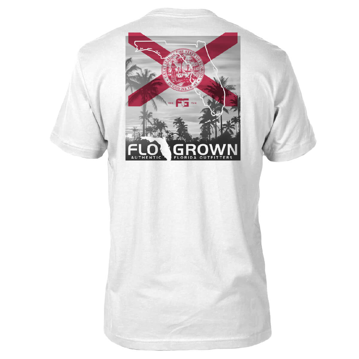 Elevate your style with the "Scenic Flag Tee" for men. Featuring a picturesque design with the Florida flag, palm trees, and the sky, this tee adds a touch of Florida's natural beauty to your leisure wear. What makes it special? The back print that complements the front, creating a unique look. Embrace Florida's scenic charm with this tee.