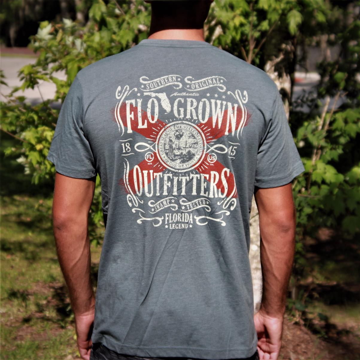 In classic Southern font, this Southern Original Outfitters Tee features "Flogrown Outfitters" over a Florida cross and seal. If you're looking for something a little warmer, be sure to check out the long sleeve version of this design!